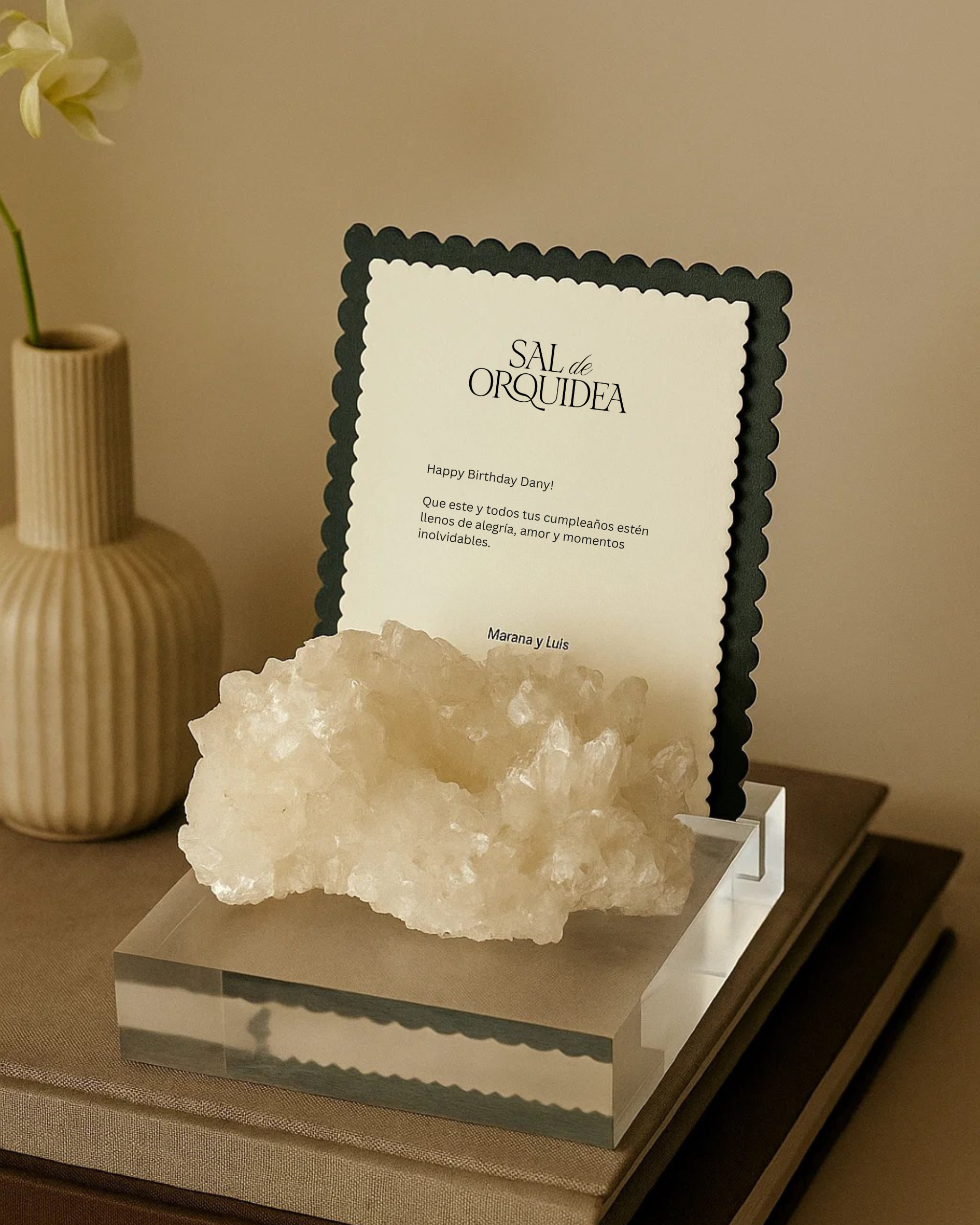 Cuarzos en Acrílico con Tarjeta de Dedicatoria Premium